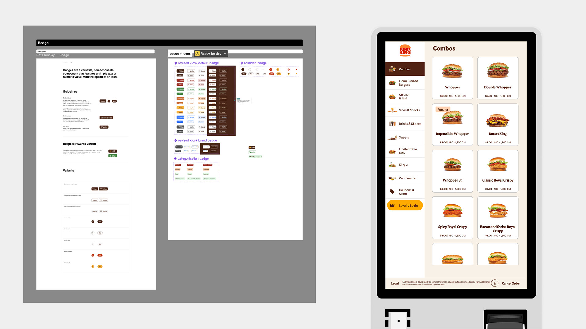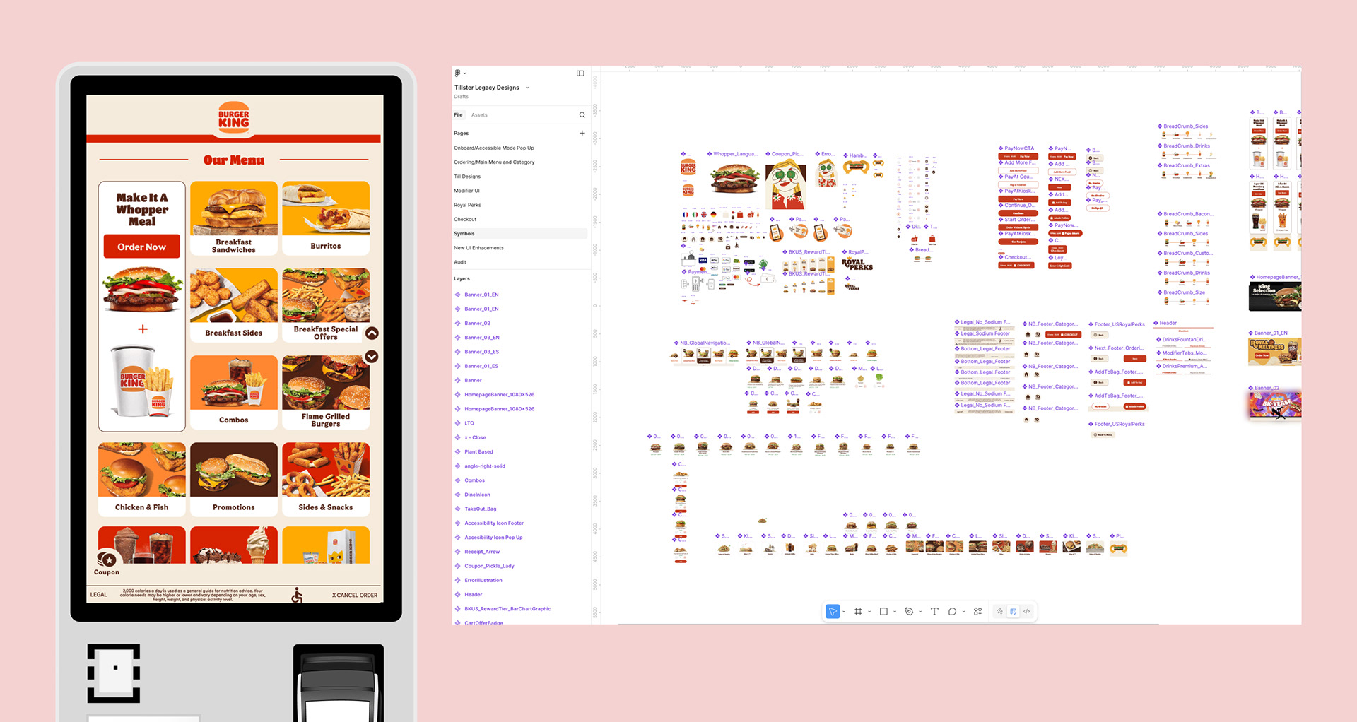 The BK self-ordering kiosk lacked a formal design system, making it difficult to evolve the experience over time. Day-to-day design work was highly complex due to inconsistent legacy designs, the absence of clear design rules, and limited component-based thinking.