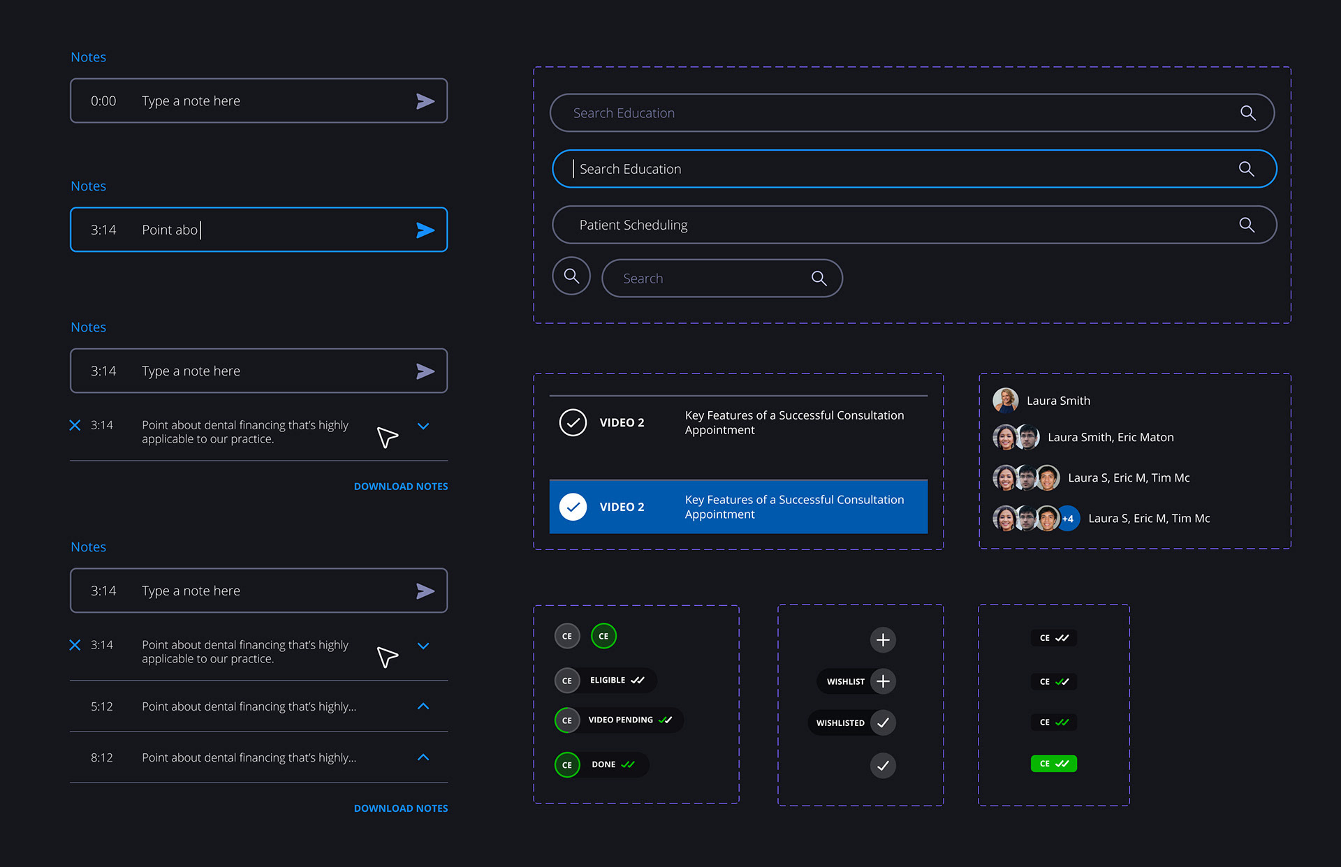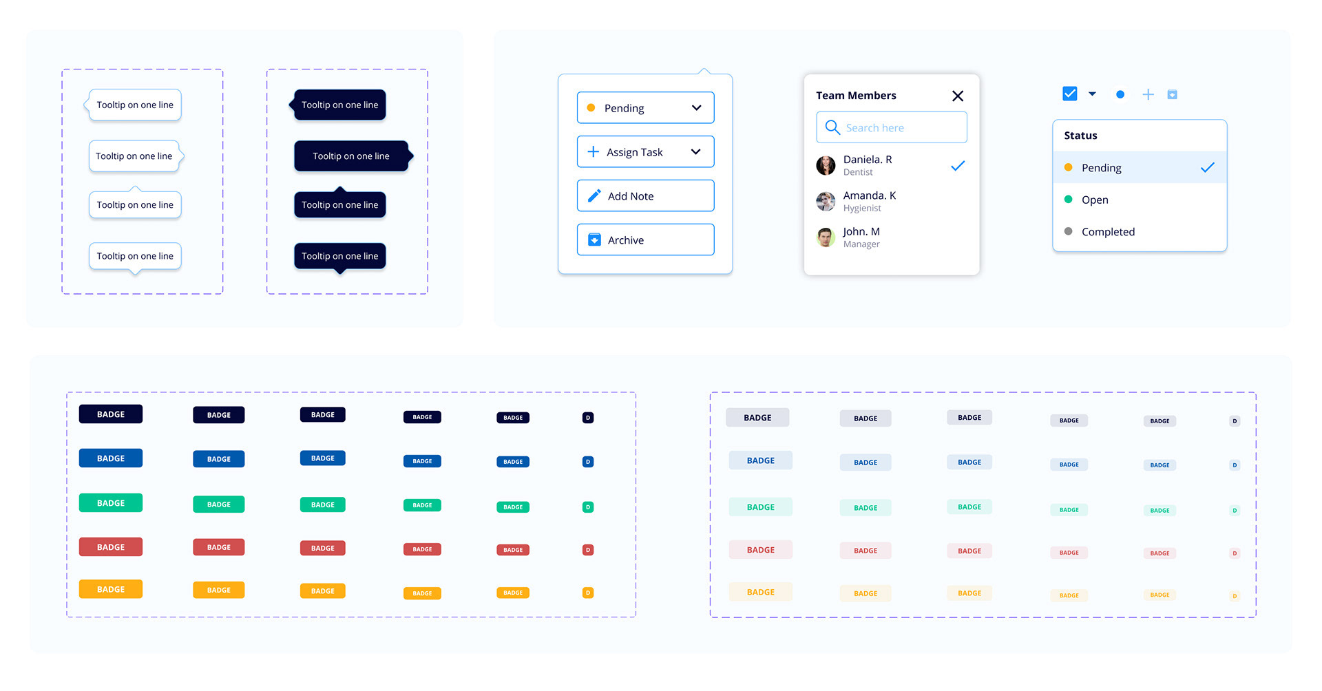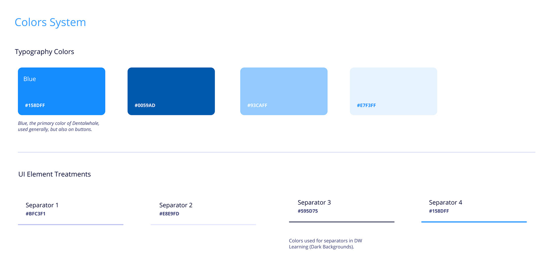 This overview highlights how the new system components introduced a more modern look and feel, while establishing more comprehensive and consistent patterns across the Dental Whale internal tool.